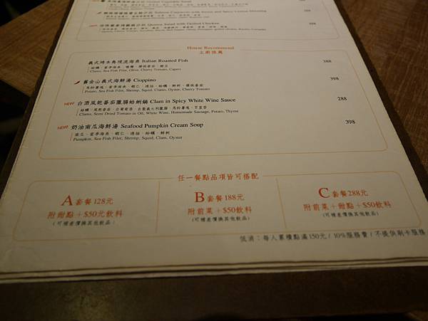 加288元享用C餐,附前菜和甜點還有50元飲料